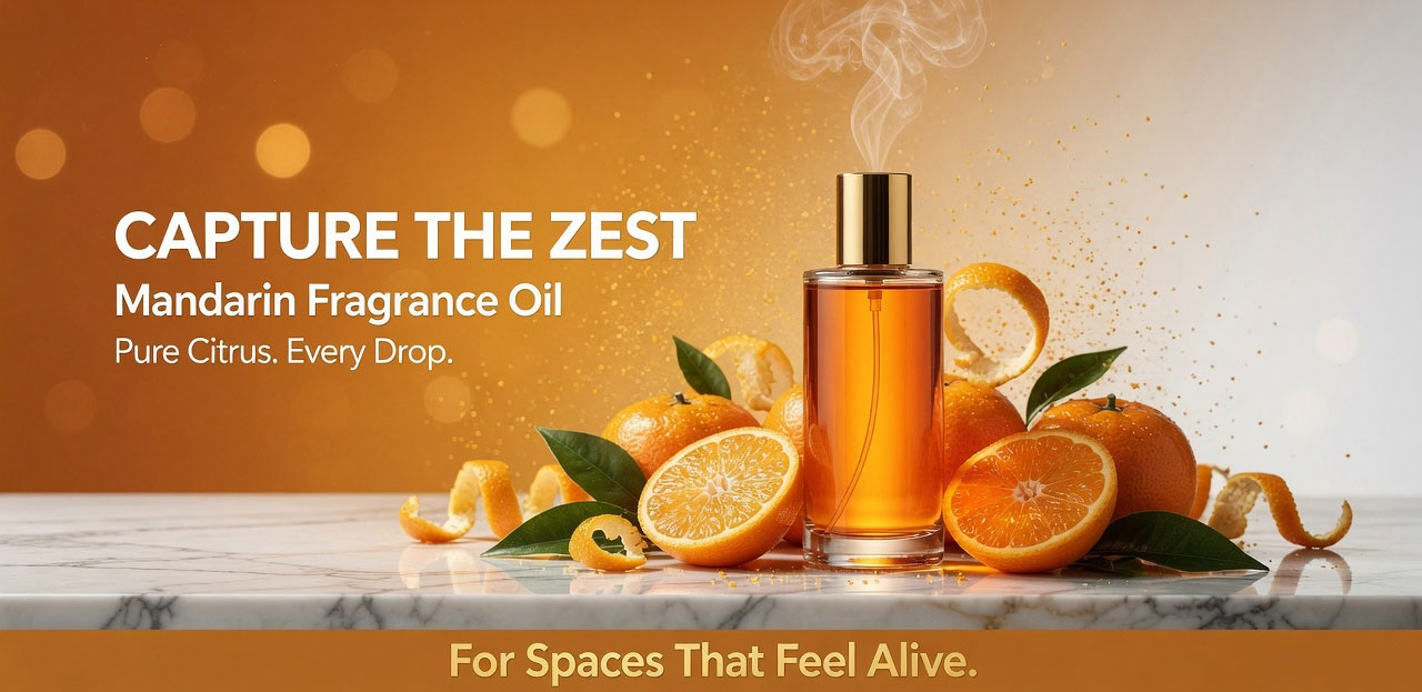 mandarin fragrance oil 1 litre — a best-in-class cosmetic and candle-grade fragrance oil delivering sweet, bright, fresh mandarin citrus with a soft floral undertone and warm citrus peel depth. Available in a professional 1-litre pack, this is the ideal fragrance oil for candle makers, soap manufacturers, personal care formulators, and incense producers requiring consistent, high-performance scent at production scale. This mandarin fragrance oil 1 litre is formulated for maximum scent throw in wax, excellent stability in soap base, and full skin-safe compliance for personal care applications — making it one of the best mandarin fragrance oils available for professional use.