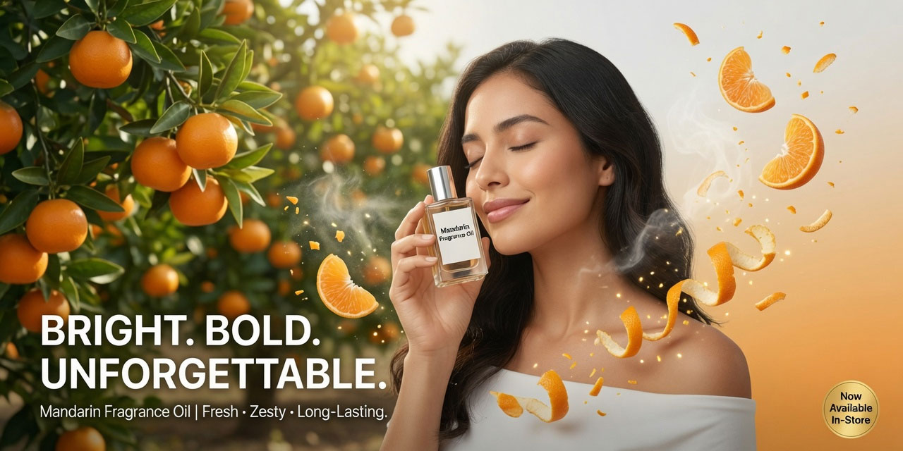 mandarin fragrance oil 1 litre — a best-in-class cosmetic and candle-grade fragrance oil delivering sweet, bright, fresh mandarin citrus with a soft floral undertone and warm citrus peel depth. Available in a professional 1-litre pack, this is the ideal fragrance oil for candle makers, soap manufacturers, personal care formulators, and incense producers requiring consistent, high-performance scent at production scale. This mandarin fragrance oil 1 litre is formulated for maximum scent throw in wax, excellent stability in soap base, and full skin-safe compliance for personal care applications — making it one of the best mandarin fragrance oils available for professional use.