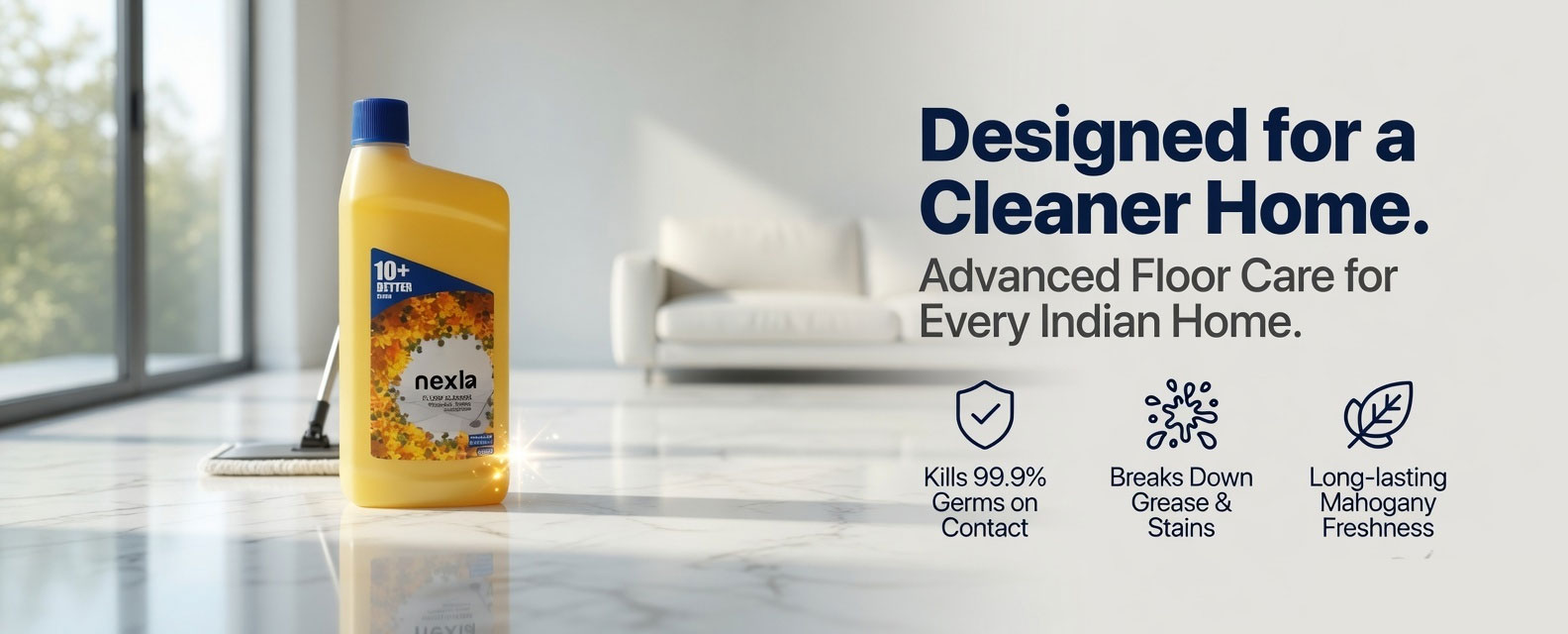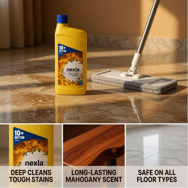 Key features and benefits of nexla floor cleaner 500ml American Mahogany fragrance