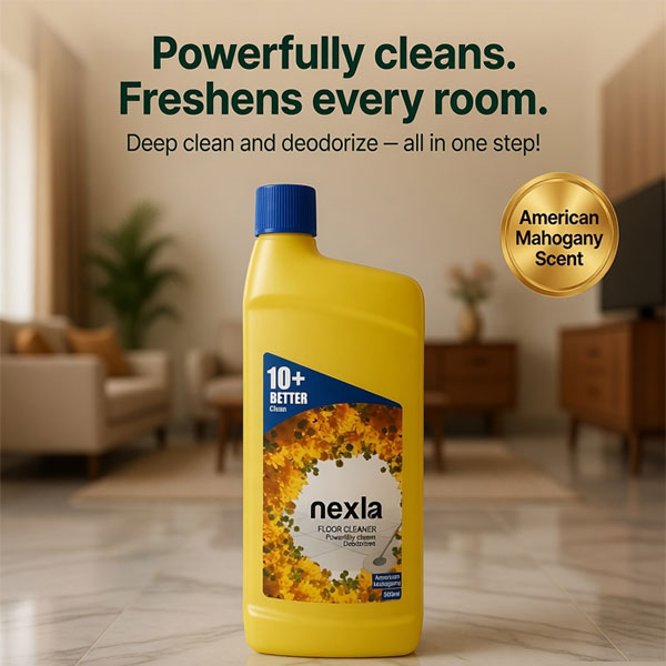 nexla floor cleaner 500ml American Mahogany fragrance transforms routine floor cleaning into a sensory experience. Inspired by the rich, warm blooms of the American Mahogany flower, this premium formula cleans deeply while infusing your home with an exotic, long‑lasting aroma. Unlike synthetic fragrances that fade quickly or smell artificial, our signature scent is crafted from natural essential oils and botanical extracts – leaving your floors immaculate and your rooms inviting.